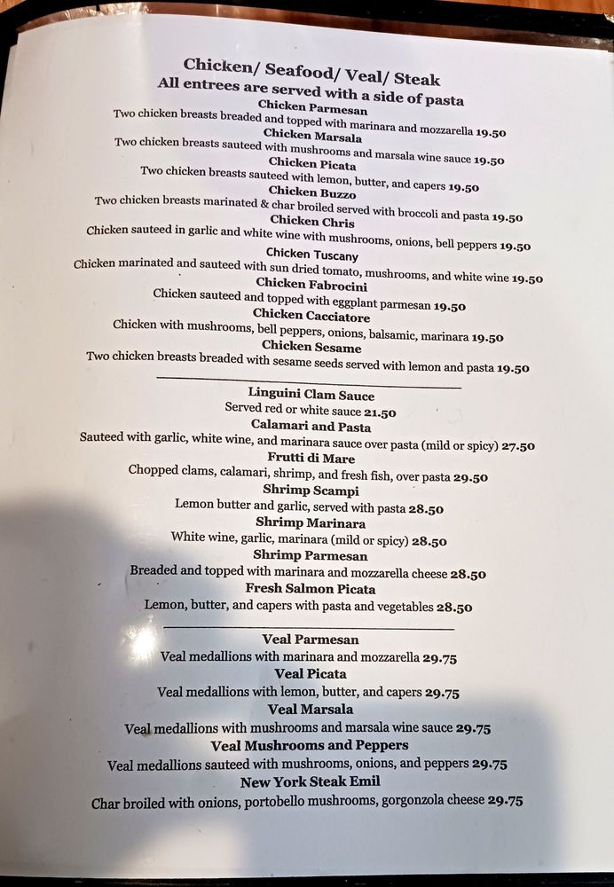 Fresh and chopped clams in white or red clam sauce.