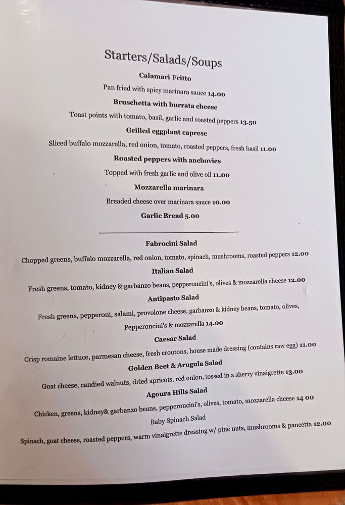 Fabrocini’s Italian Kitchen, located in Tarzana, CA, offers a cozy and packed atmosphere with reliable Italian cuisine. From flavorful Antipasti like Calamari Fritto to fresh Insalate options like Fabrocini Salad, there is something for everyone. The menu also features entree salads like Grilled Chicken Salad and Sonoma Chopped Salad for a lighter option. Customer reviews rave about the delicious ravioli, chicken piccata, and eggplant parmigiana. The attentive service and homey vibe add to the overall dining experience. With vegan and vegetarian options, various payment methods accepted, and a casual setting, Fabrocini’s Italian Kitchen caters to a wide range of diners. Whether you're looking for a hearty meal, a cozy ambiance, or great value, Fabrocini’s is a hidden gem worth trying.