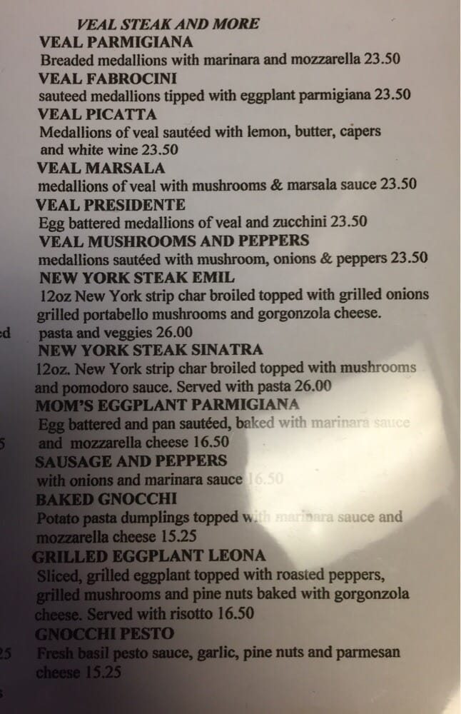 Veal sauteed with mushrooms, onions, and peppers.